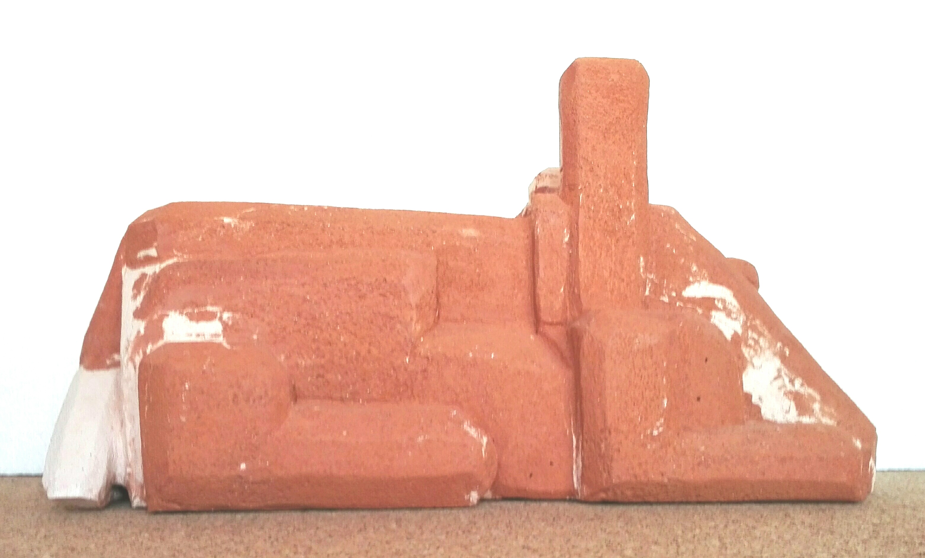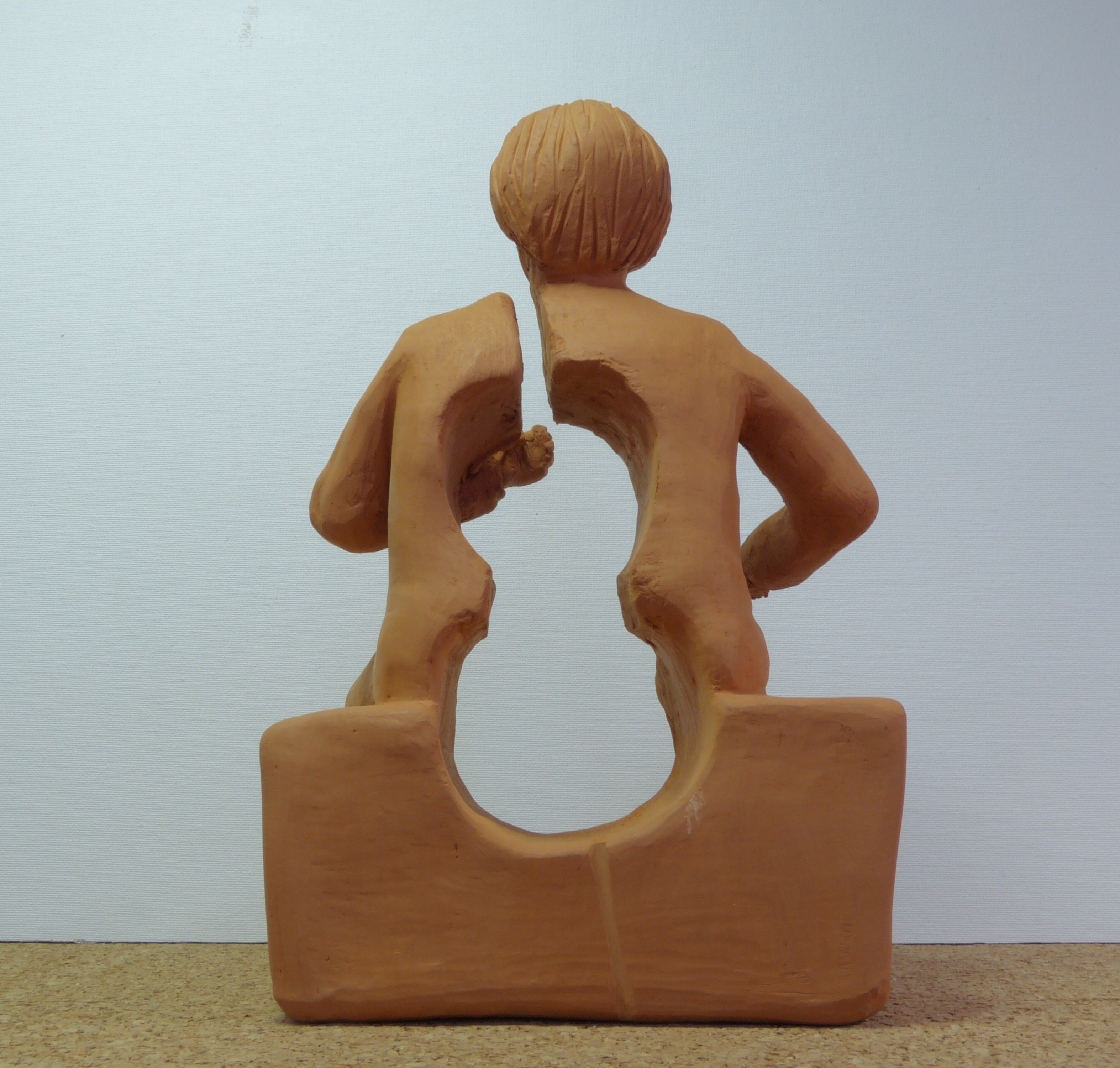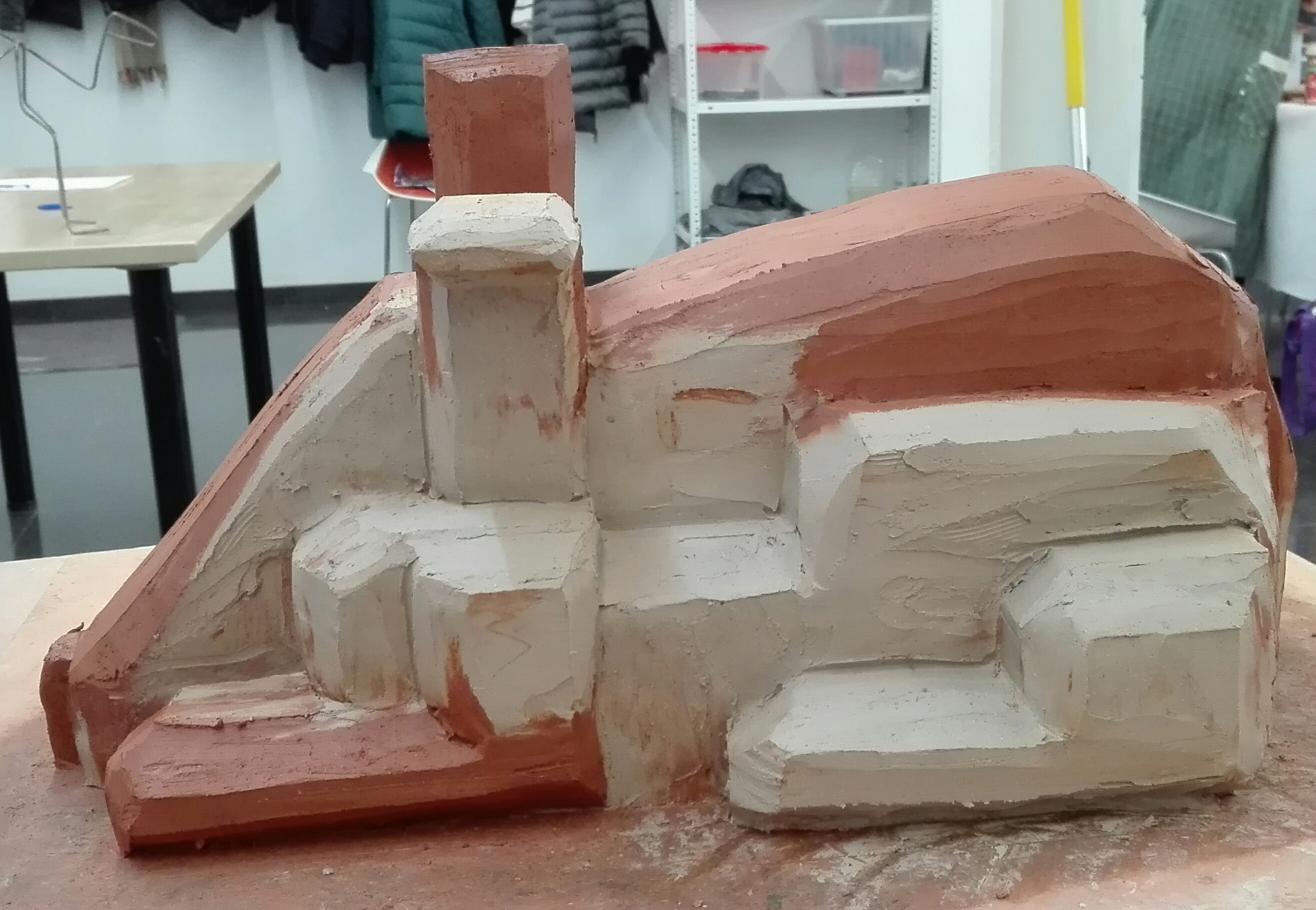 Perro guardián hecho a dos arcillas, blanca y roja. La primera foto, antes de llevarla al horno.