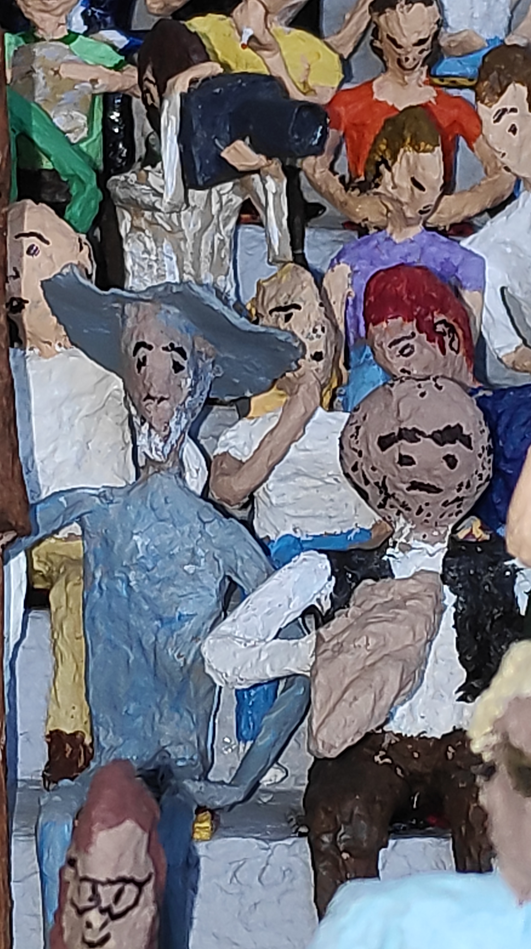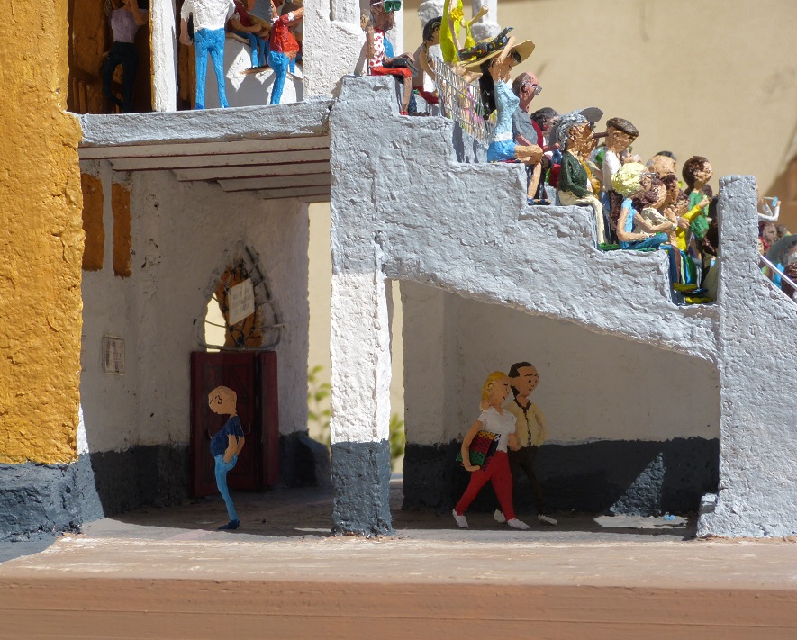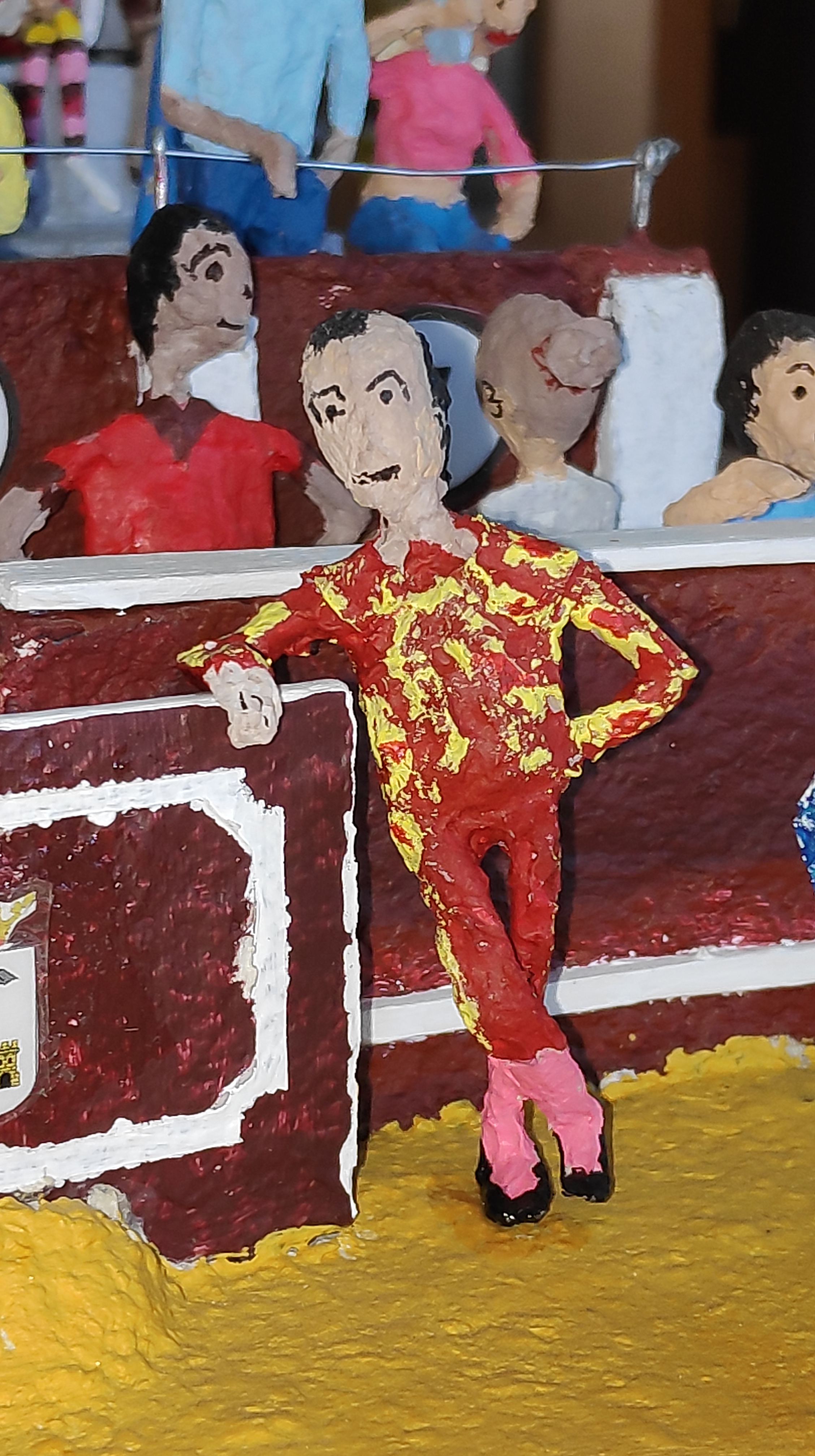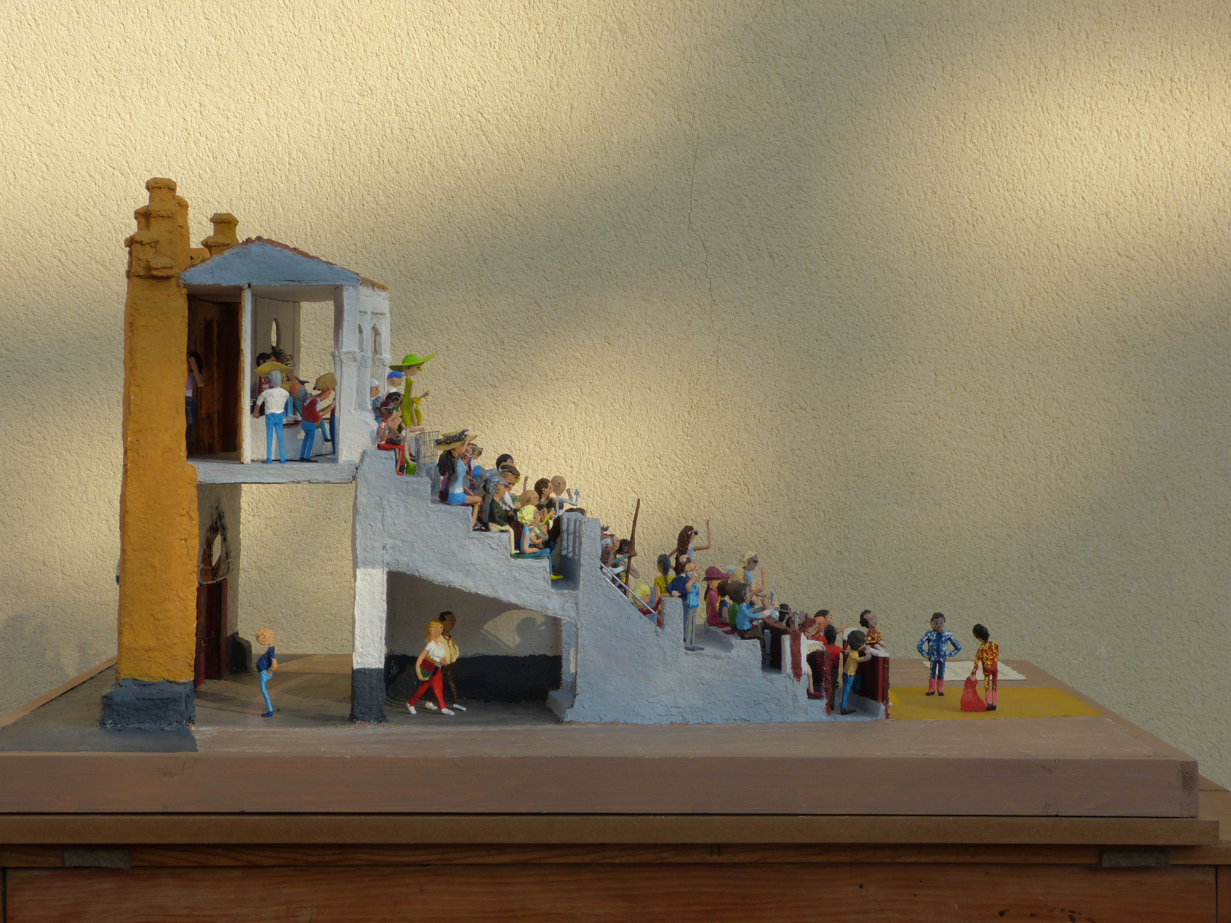 Plaza de Toros de Albacete, segmento del tendido 7. Momento del descanso para merendar. 101 figuras, gata incluida.